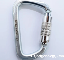 第二种消防安全钩是一种闭环式的安全钩,这种安全钩经常被用在高空作业防护设备上,它的外形有“D”形、“8”字形等,带有自锁功能,有的有弹簧舌自动复位功能,主要和安全绳搭配使用,增加消防人员从高处下降时的安全性。